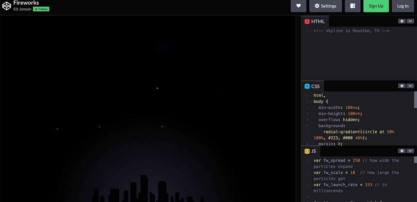 3. Fireworks - CodePen