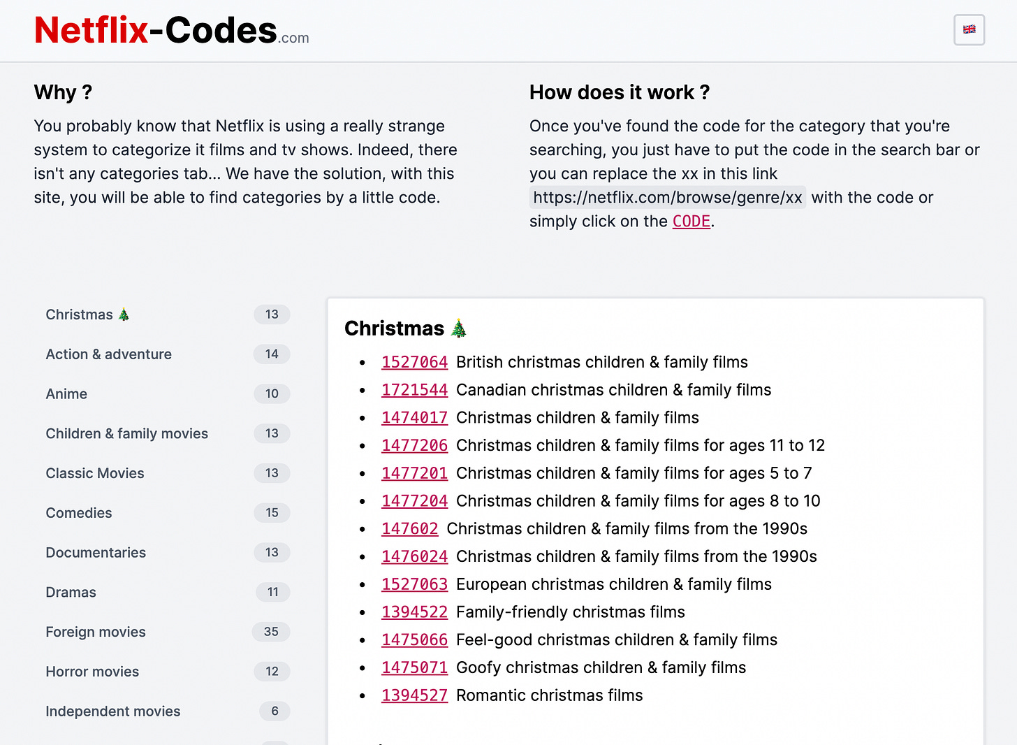 Netflix has their own internal way to categorize sub-genres and this website helps you navigate them.
