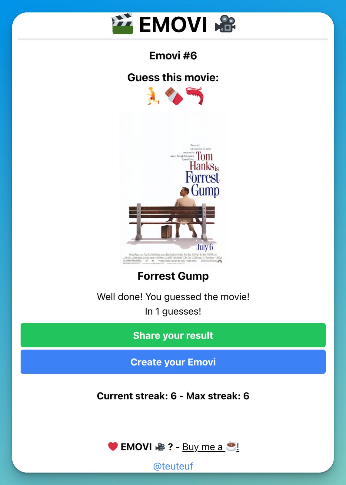 Guess the movie based off emojis. It seems like every week there’s a new variation of the Wordle game. It’s great to see developers building fun, lightweight, browser games that can easily be shared with friends. Have you created any Wordle-like games? Or have any favourites? Share them with me on Twitter!
