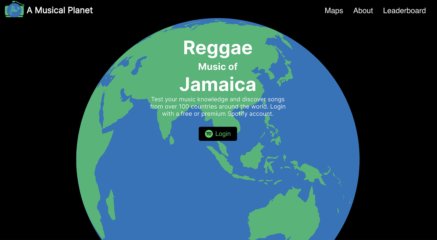 In this weekendâs travel spirit, this full-stack app is using the Spotify API to have you guess where in the world a song is from! You play by listening to a sample track of a local band and guessing where in the world they are from! đ